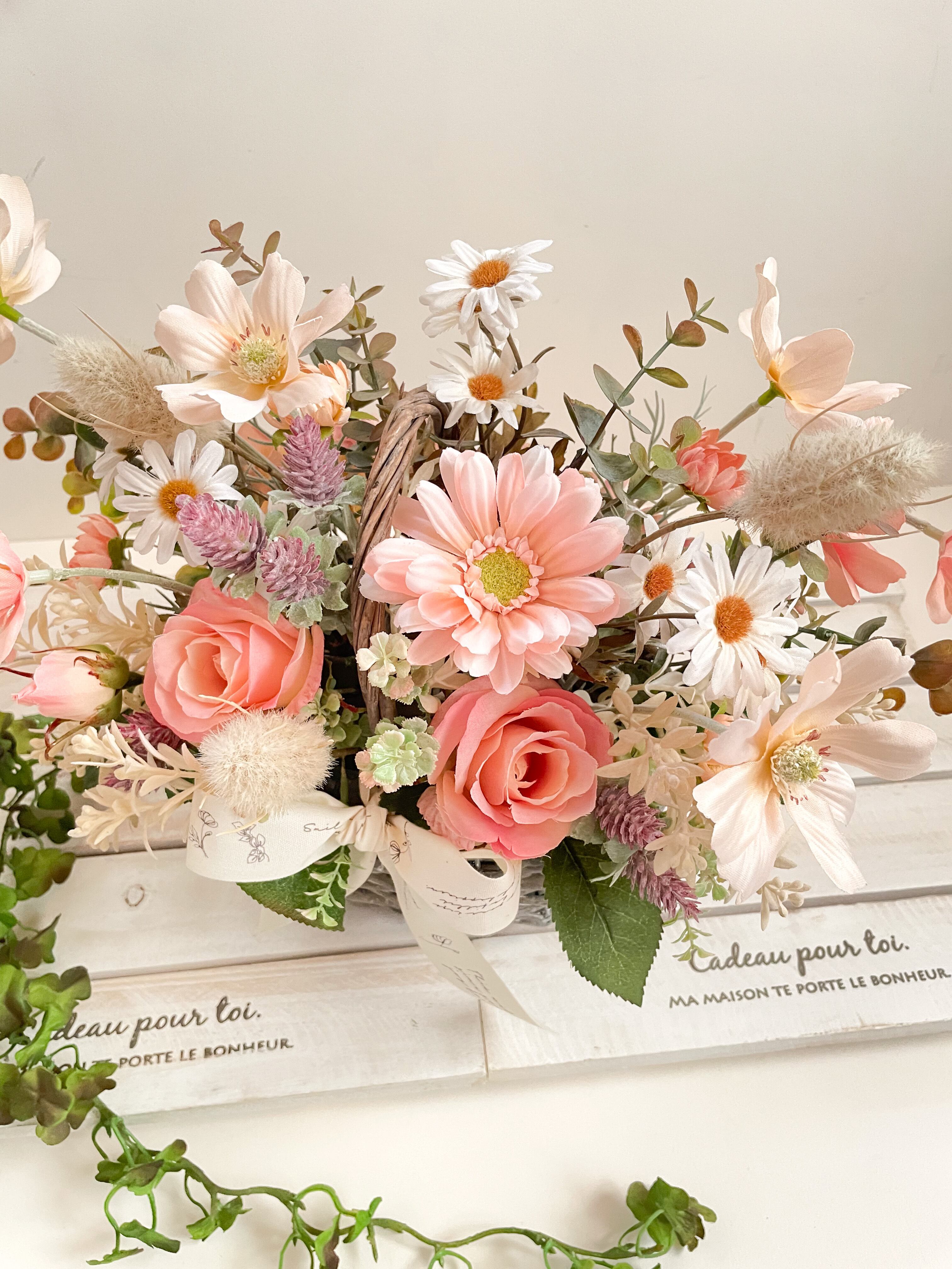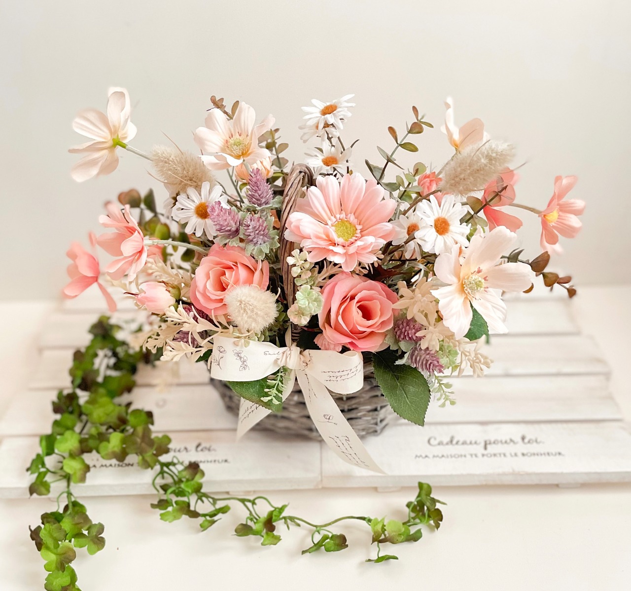 アーティフィシャルフラワー(高品質造花)でお作りしたバスケットアレンジです。