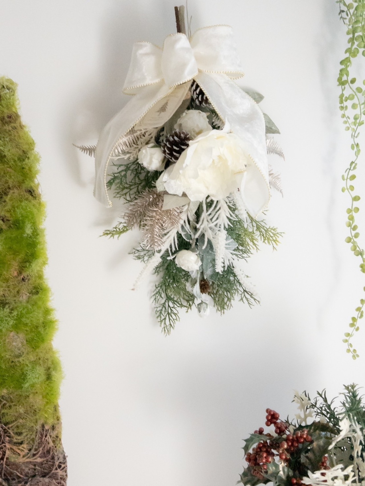 少し大人の雰囲気のホワイトスワッグでお部屋をクリスマスにしませんか。