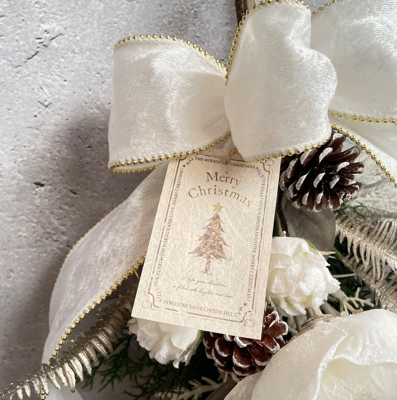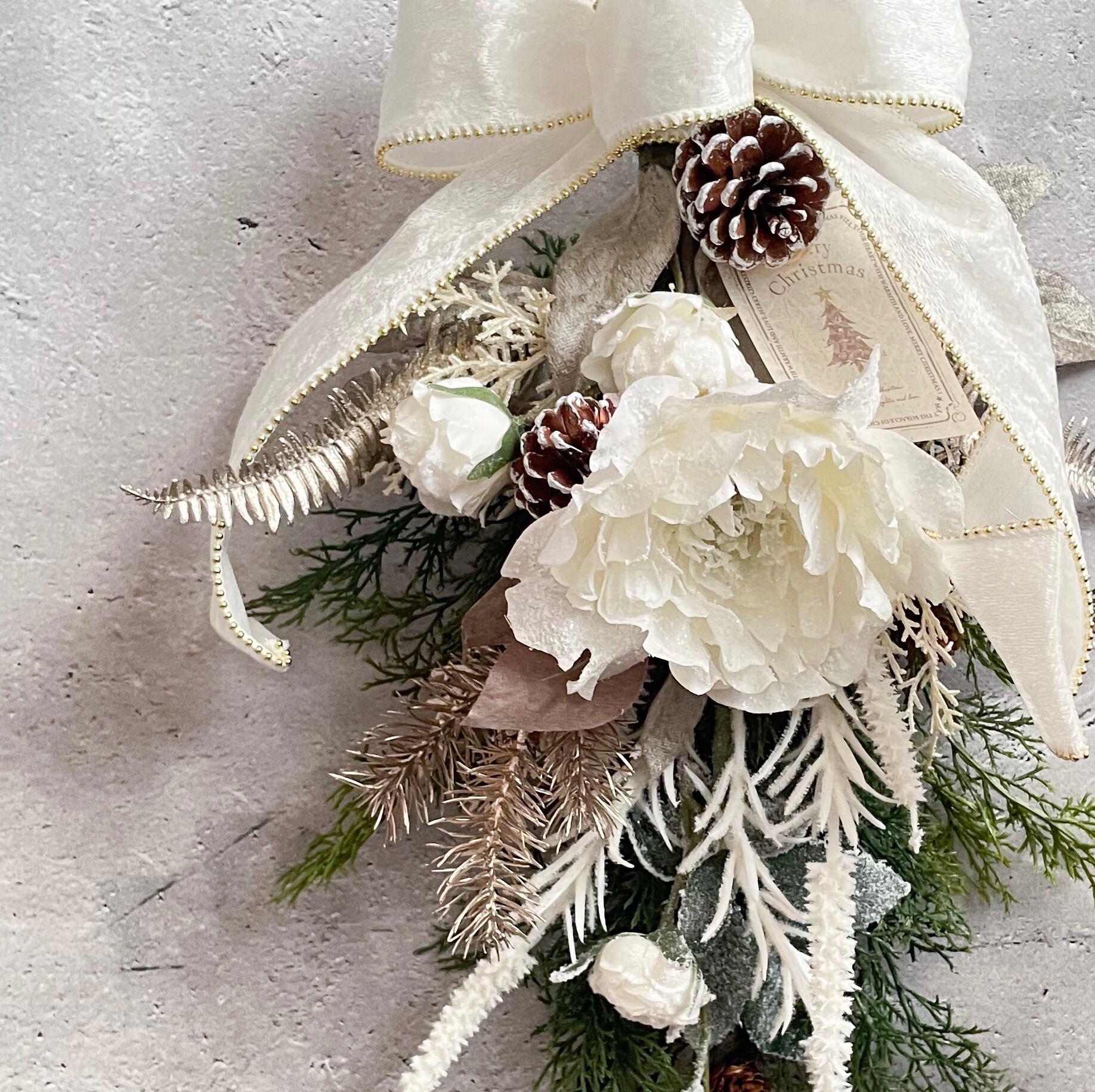 クリスマス スワッグ ピオニー バラ ホワイト クリス松ぼっくり 誕生祝い 卒業祝い 入学祝い 新生活 就職祝い 結婚祝い ギフト