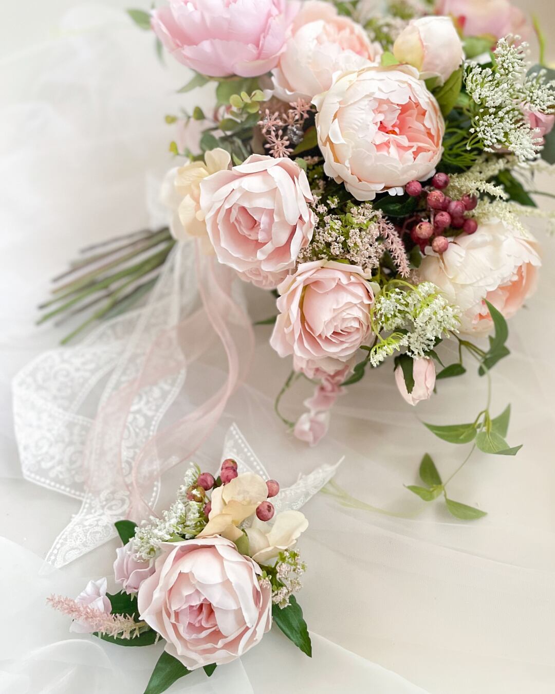 アーティフィシャルフラワー(高品質造花)でお作りしたブライダルブーケとブートニアです⭐︎